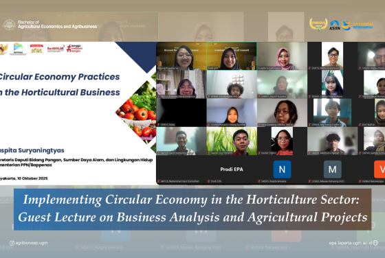 Yogyakarta, October 20, 2025 - The Agricultural Economics and Agribusiness Study Program at Universitas Gadjah Mada held a guest lecture for the Business Analysis and Agricultural Projects course. The lecture ...