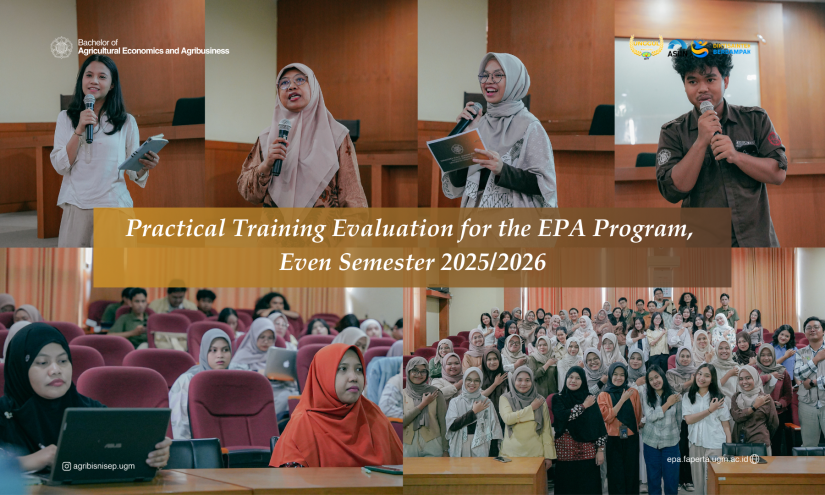 Yogyakarta, June 19, 2025 – The Agricultural Economics and Agribusiness (EPA) Study Program conducted the Practical Training Evaluation Activity for the 2025/2026 Even Semester on Thursday, June 19, 2025, at the MMA Auditorium, Building A.10 Sosek, 3rd Floor. The event was attended by Practicum Coordinators and Practicum Assistants who have actively supported the smooth operation of the practicum process during the current semester.