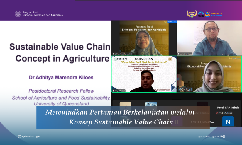 Yogyakarta, 5 November 2025 – Program Studi Ekonomi Pertanian dan Agribisnis UGM telah melaksanakan kuliah tamu Mata Kuliah Ekonomi Pertanian. Kuliah ni mengusung tema “Sustainable Value Chains Concept in Agriculture” dengan narasumber Dr. Adhitya Marendra Kiloes, Peneliti Pasca Doktoral, The University of Queensland.