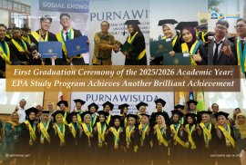Yogyakarta, November 26, 2026 — The Agricultural Economics and Agribusiness (EPA) Study Program, Faculty of Agriculture, UGM, proudly welcomed 10 male graduates and 12 female graduates who officially earned their Bachelor of Agriculture (S.P.) degrees at the First Graduation Ceremony of the 2025/2026 Academic Year. This event marked a significant milestone for the entire academic community, as it once again highlighted numerous commendable achievements at both the departmental and faculty levels.